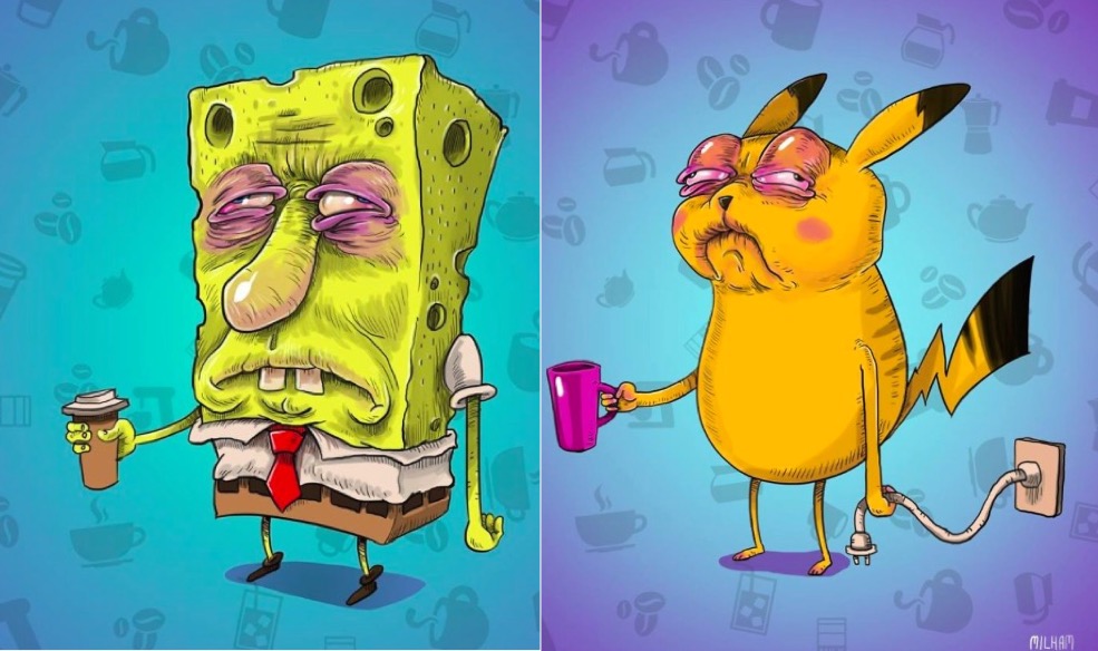 18 personnages de dessins animés connus avant leur café du matin