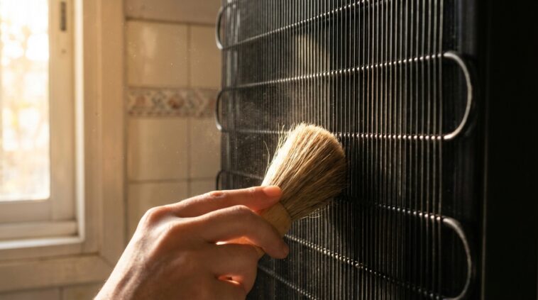 Pour les zones plus tenaces ou difficiles d’accès, un pinceau sec à poils souples ou une brosse à radiateur fera des merveilles pour déloger la poussière incrustée, que vous pourrez ensuite aspirer. L’objectif est de retrouver le métal noir d’origine. Une fois le nettoyage terminé, vient le moment de remettre l’appareil en place. Attention à ne pas le coller complètement au mur ! Il est crucial de laisser un espace d’au moins 5 à 10 centimètres entre la grille et la paroi pour permettre à l’air de circuler librement. C’est ce flux d’air qui emportera la chaleur et garantira l’efficacité de votre nettoyage.