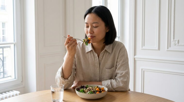 Pour enclencher cette amélioration notable, le secret réside dans le nombre . Les spécialistes conseillent d’effectuer 20 à 30 mouvements par bouchée . L’objectif final est immuable : transformer visuellement et tactilement chaque morceau avalé pour obtenir une texture totalement liquide en bouche . En comptant silencieusement ces cycles, votre corps intègre un nouveau rythme salutaire, transformant une simple pause déjeuner en un véritable soin global .